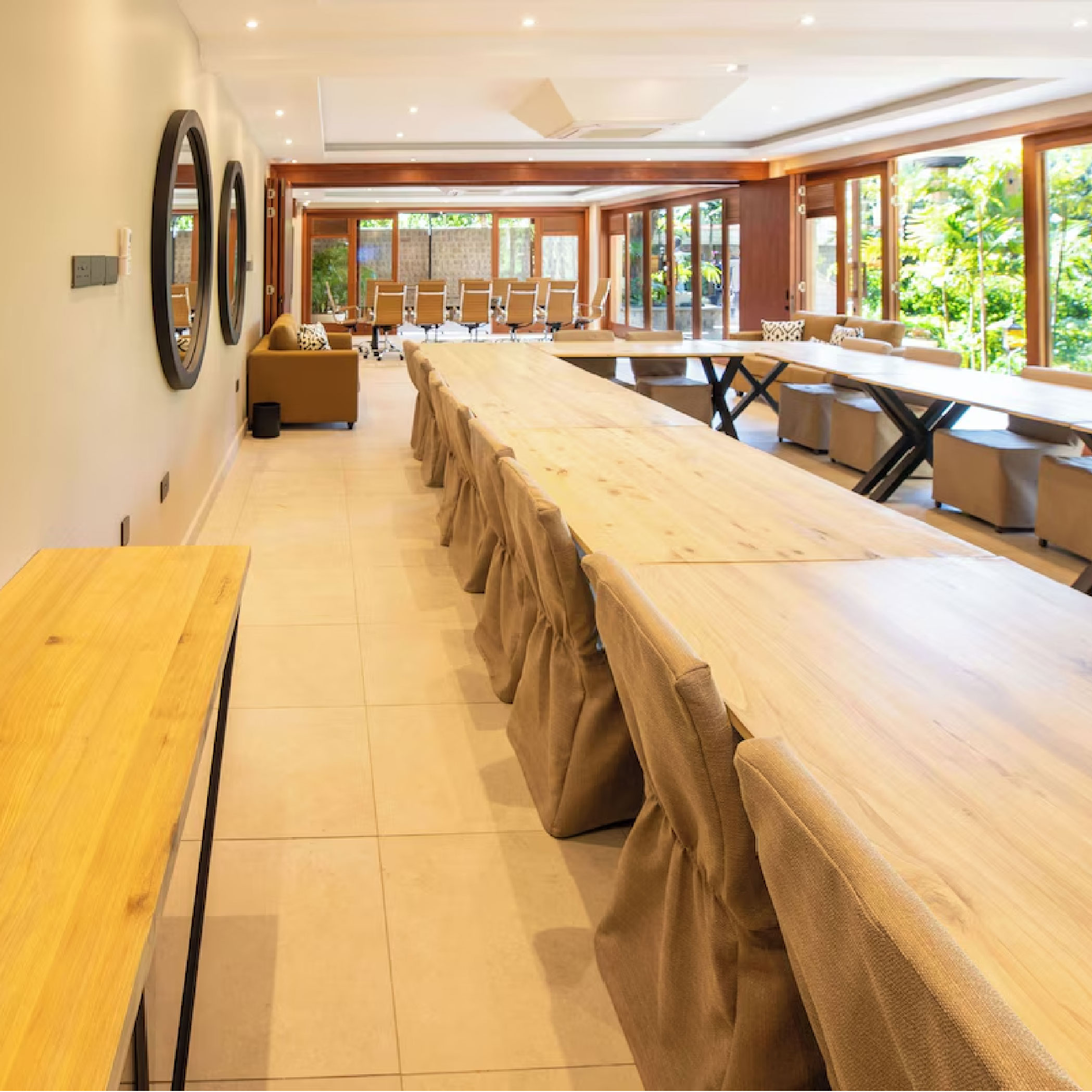 Pax Manor Muthaiga stands as a boutique 5-star sanctuary, artfully blending stately manor elegance with contemporary sophistication. This luxurious property offers 26 bespoke rooms and suites, each thoughtfully designed to reflect timeless charm and modern comfort, many overlooking serene gardens or the lush edges of Karura Forest. Guests indulge in culinary excellence at The Royal 58 Restaurant and unwind with refined indulgence at the Esquire Cigar & Whisky Lounge. Leisure and wellness take center stage at the Ataraxia Spa, complemented by an infinity pool, Hermes-equipped gym, private cinema room (Esquire Cinema), and manicured gardens that exude calm sophistication. With well-appointed meeting rooms and event spaces steeped in heritage, Pax Manor seamlessly caters to both luxury leisure seekers and discerning business travellers who value exclusivity, ambience, and exceptional service.