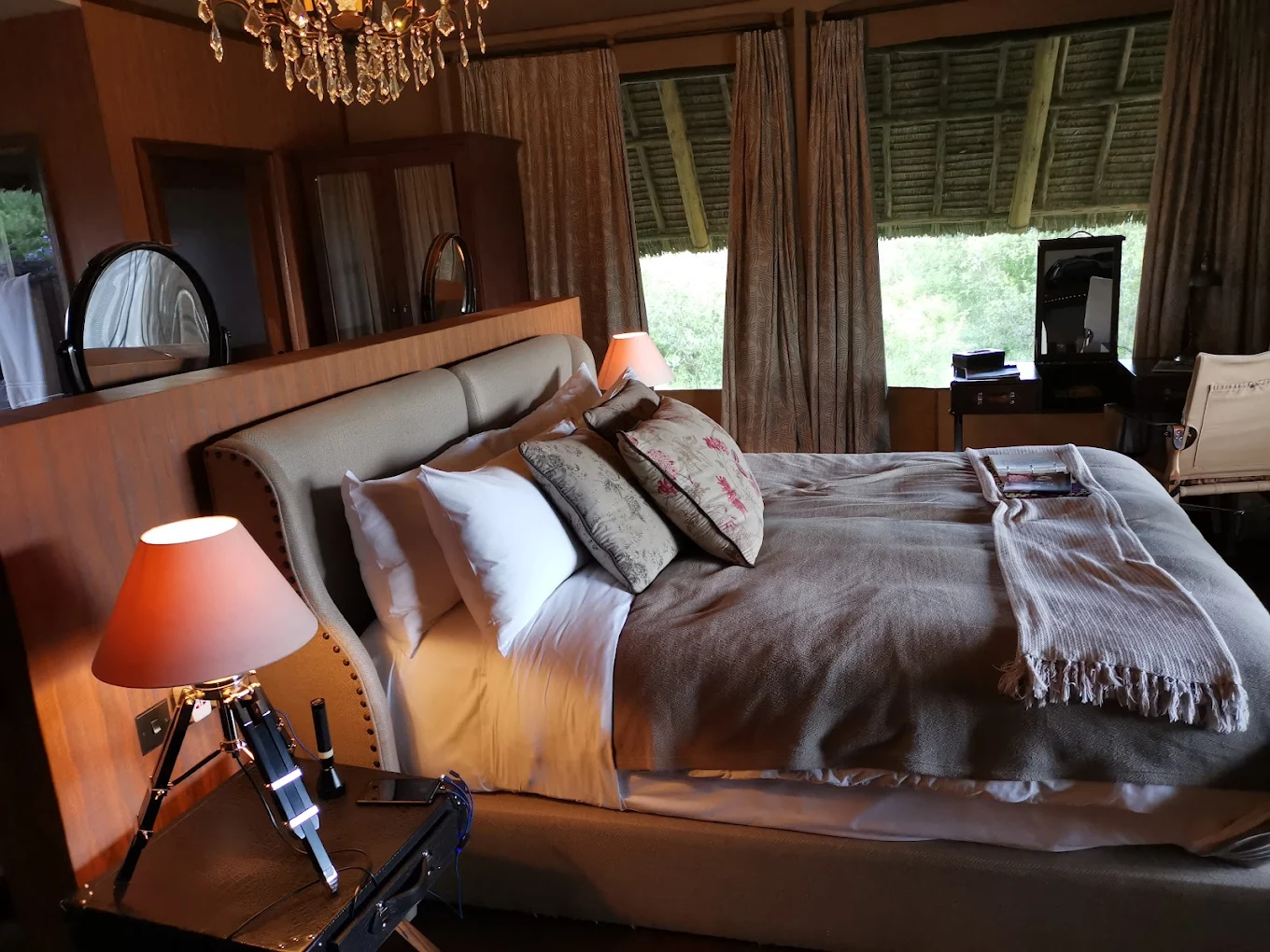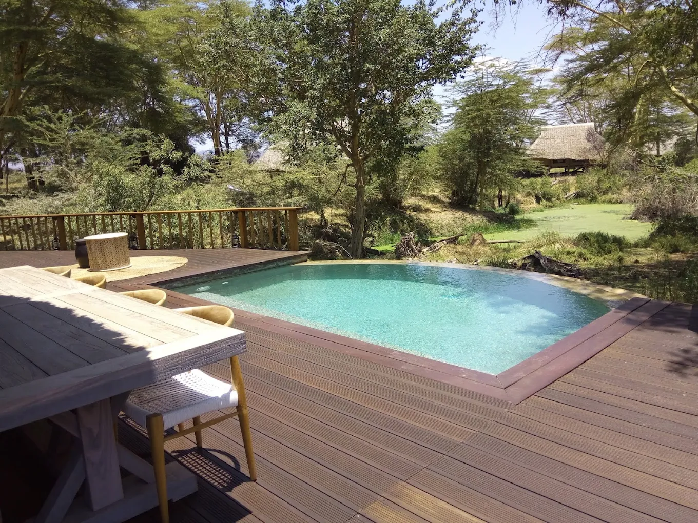 - Accommodation – Luxury tented suites with private decks and plunge pools, en-suite bathrooms, and safari-style interiors.