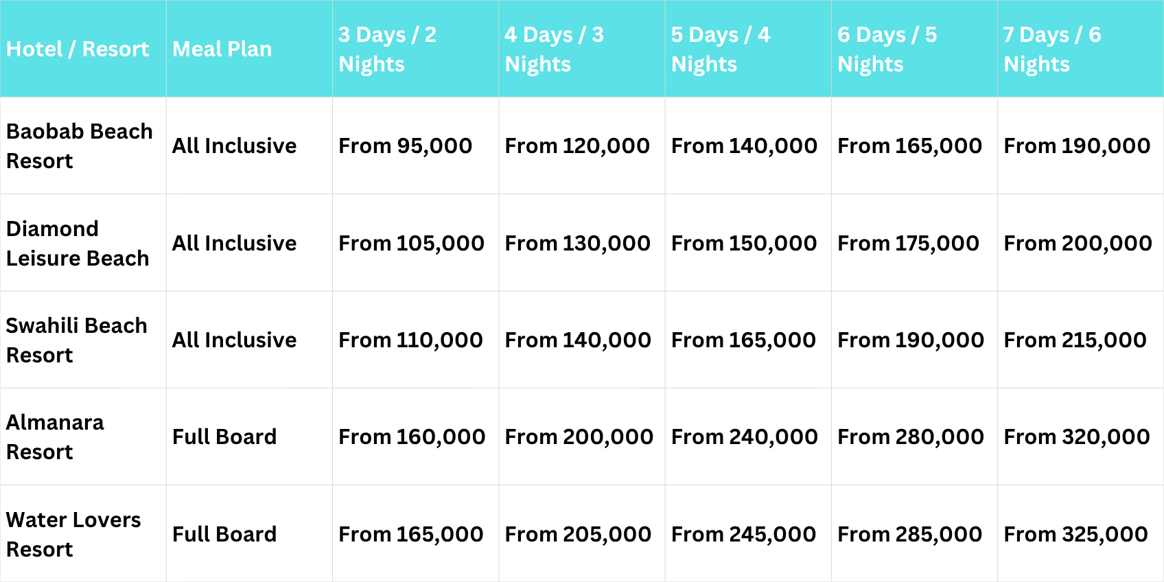 - All-Inclusive or Full Board meal plan options.