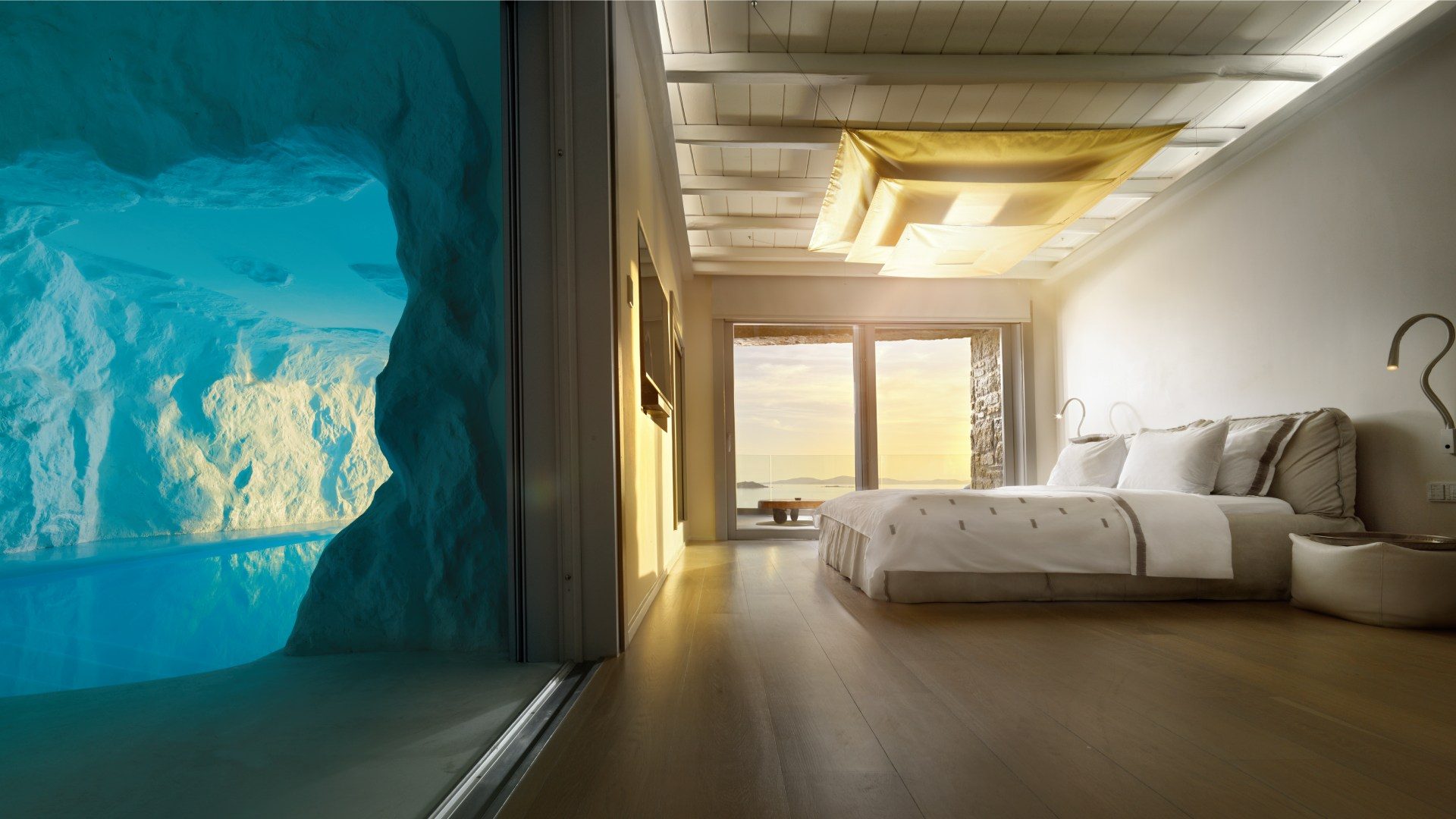 - Designer suites and villas with private terraces or plunge pools