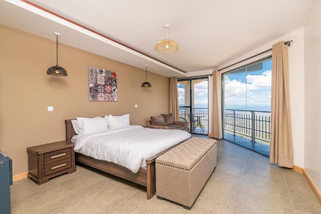 Champagne Ridge Villa is a masterpiece carved into the cliffside — luxurious yet intimate, designed for travelers who crave beauty and solitude. Each suite opens onto the vast horizon, where the line between sky and earth blurs into magic. The villa features an infinity pool overlooking the valley, elegant living spaces, a modern kitchen, and private outdoor dining spots ideal for romantic dinners or group sundowners.