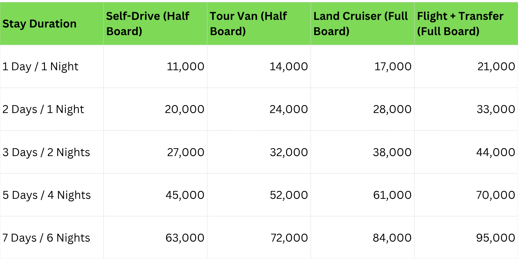 Accommodation in selected meal plan (Half or Full Board) 🛏️