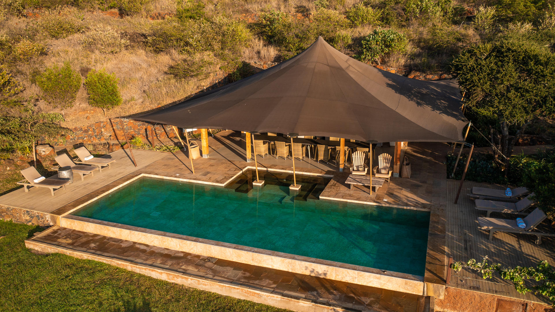 - Luxury Tented Suites with floor-to-ceiling windows and panoramic views.
