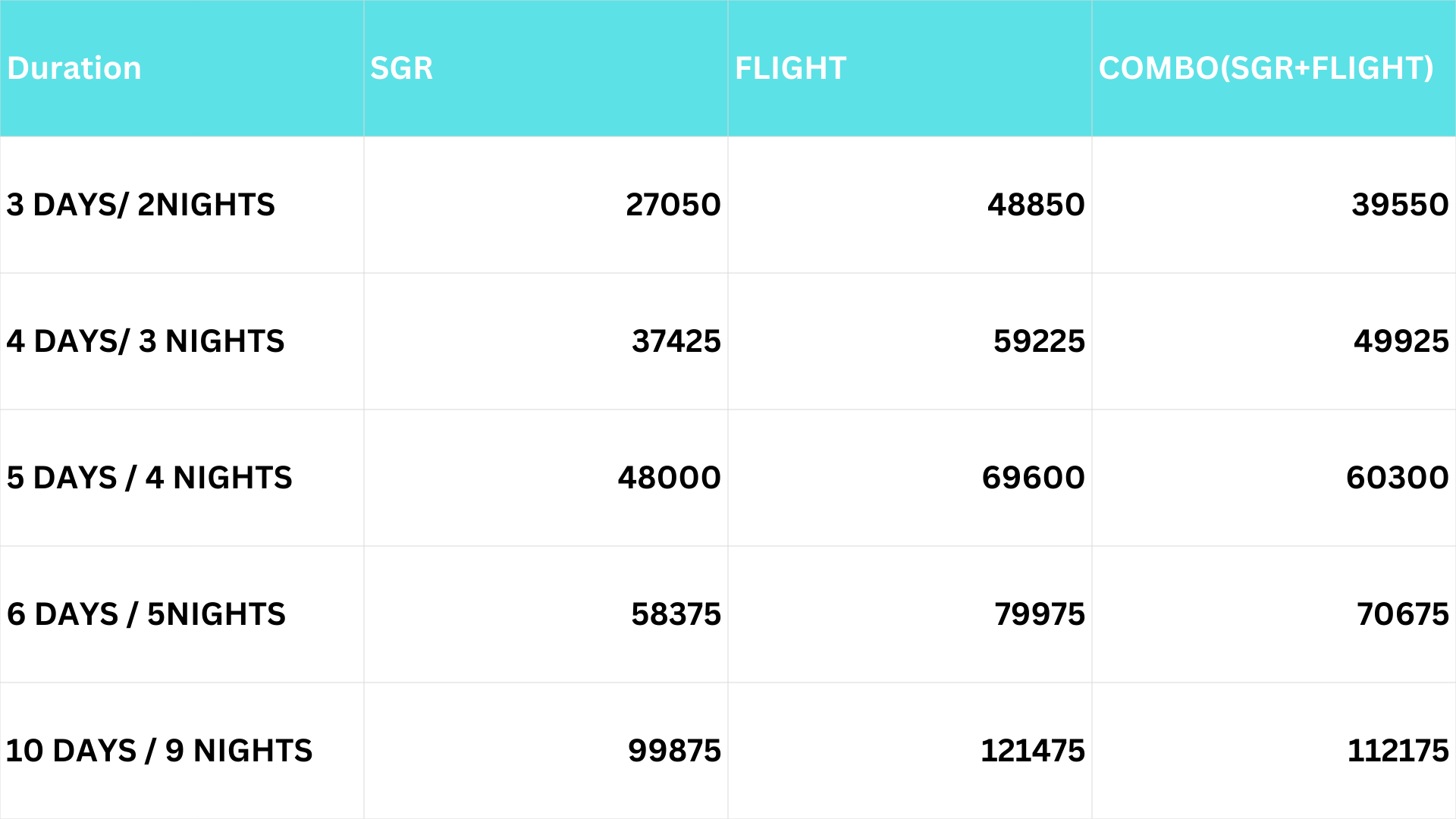 Pricing Per Person Sharing