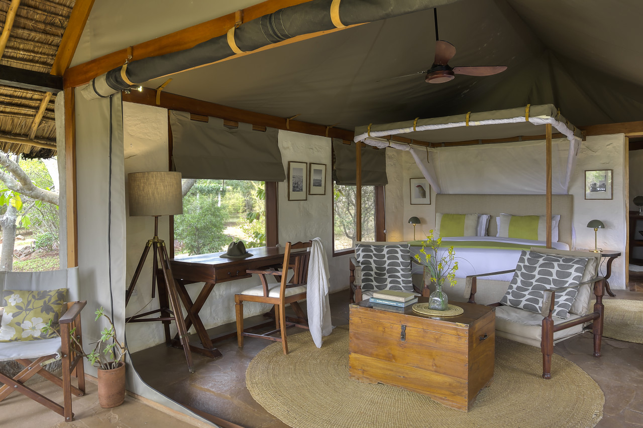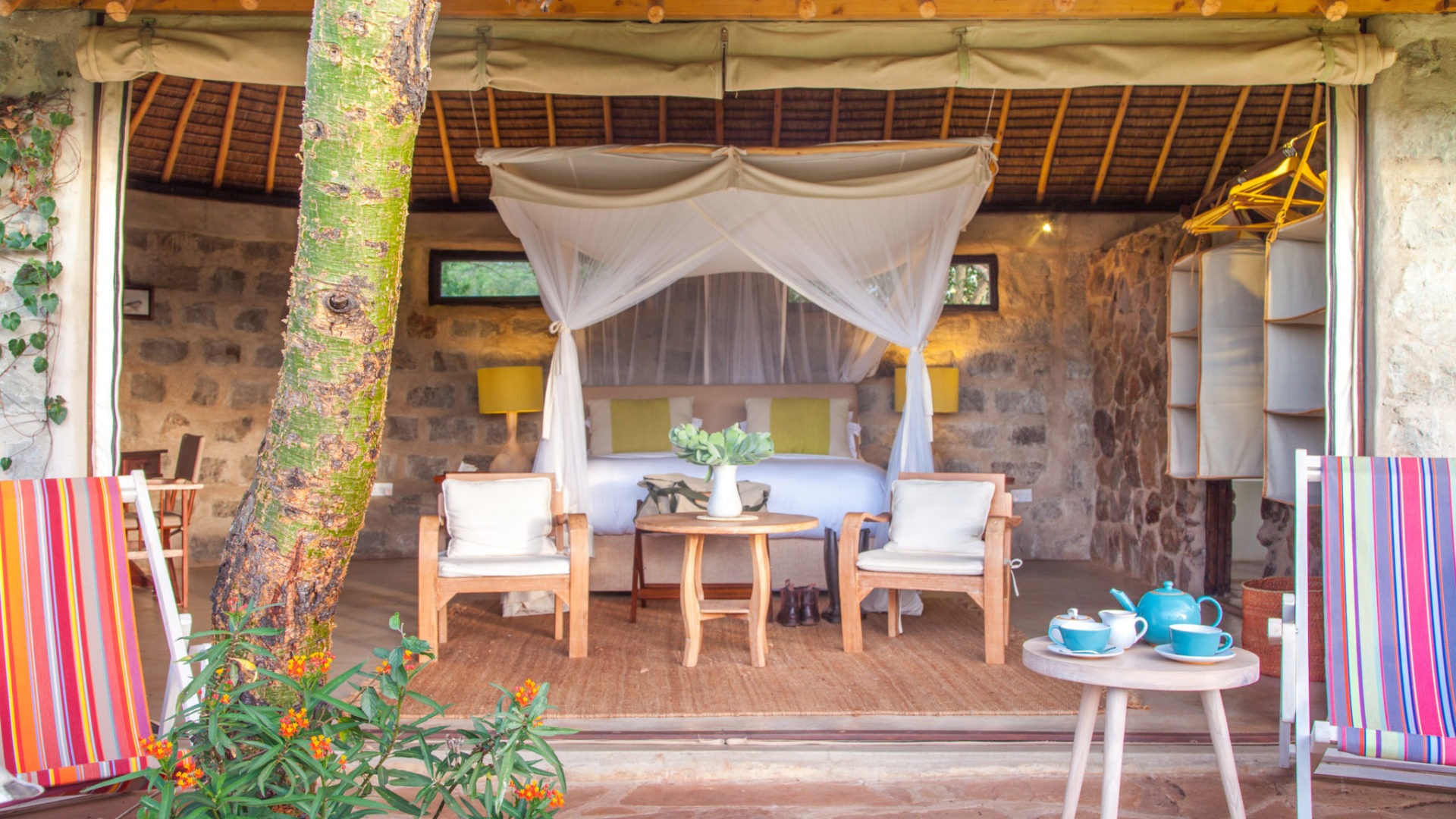 Ololo Safari Lodge is a boutique, family-owned sanctuary set on a working 20-acre organic farm, where every dish is “paddock to plate”. With just 13 rooms (or up to 16 rooms depending source) on site, you’re assured intimacy, character, and space to breathe. Rooms range from the original Stable Rooms to tented cottages under makuti thatch, a three-bedroom cottage for up to six guests, and a family wing for five.