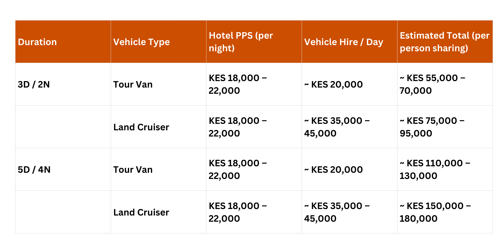 - Staff Support – assistance with cooking, cleaning, and portering.