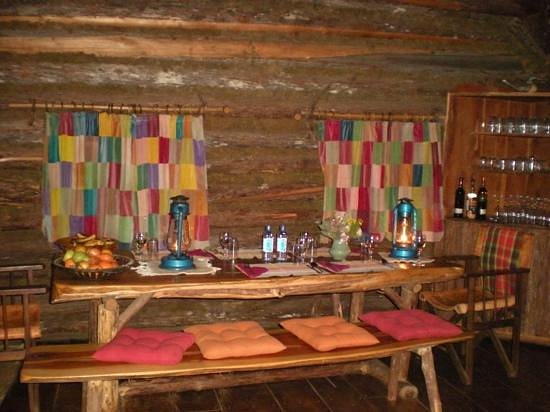- Two Rustic Log Cabins – main cabin with lounge, dining, kitchen, and en-suite room (plus bunk bed); guest cabin with twin beds and en-suite.