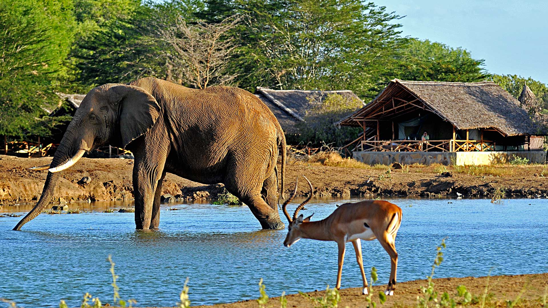 Nestled in the heart of Tsavo East National Park, Satao Tented Camp offers an authentic luxury safari experience surrounded by vast savannahs and a bustling waterhole frequently visited by elephants, giraffes, and antelope.