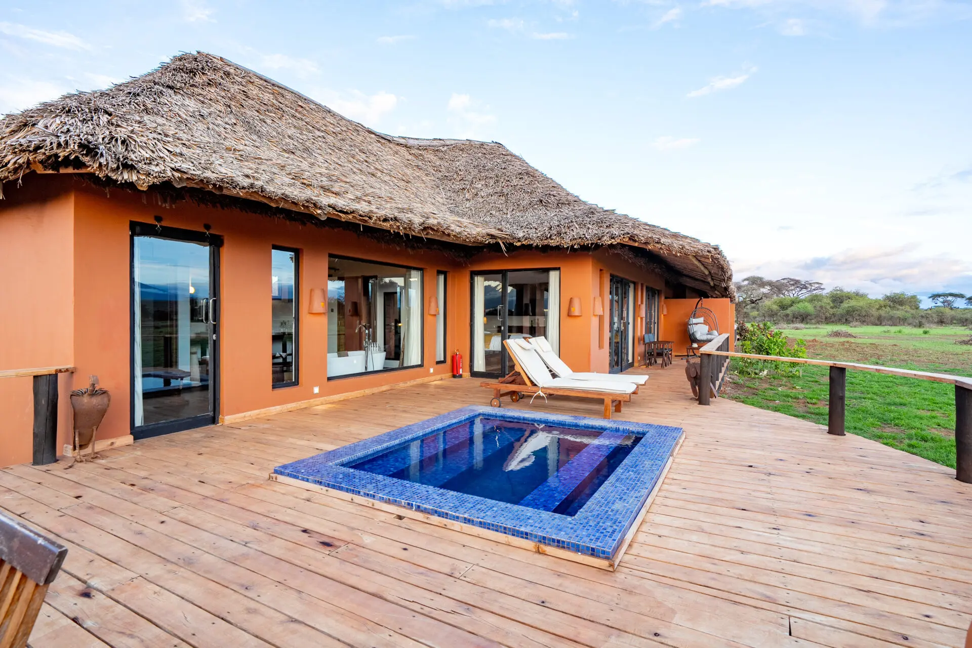 ✨ Serene Safari Retreat: The lodge features cozy cottages and tents with private decks, natural décor, and open-air lounges. Guests can relax while observing wildlife right from the lodge, making it perfect for both adventure and tranquility.